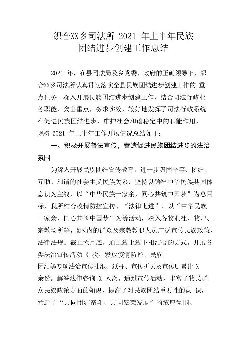 / 2021年上半年织合玛司法所民族团结创建工作总结