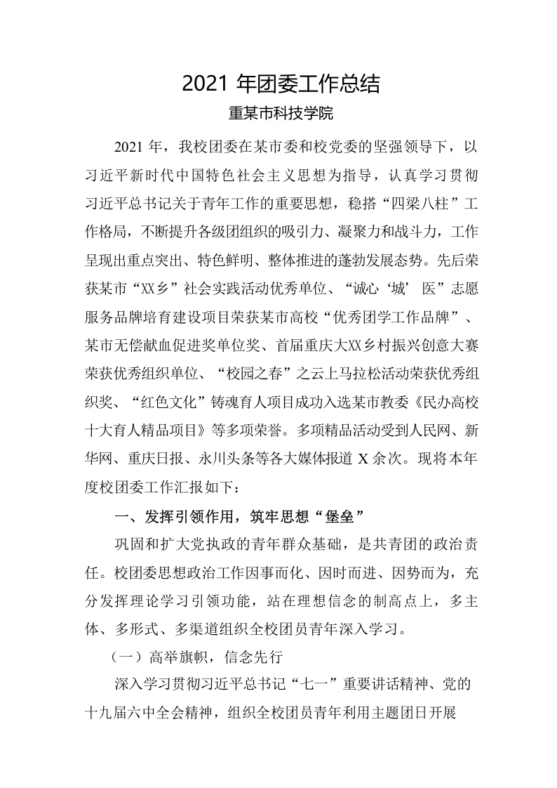 / 2021年团委工作总结(团市委汇报)