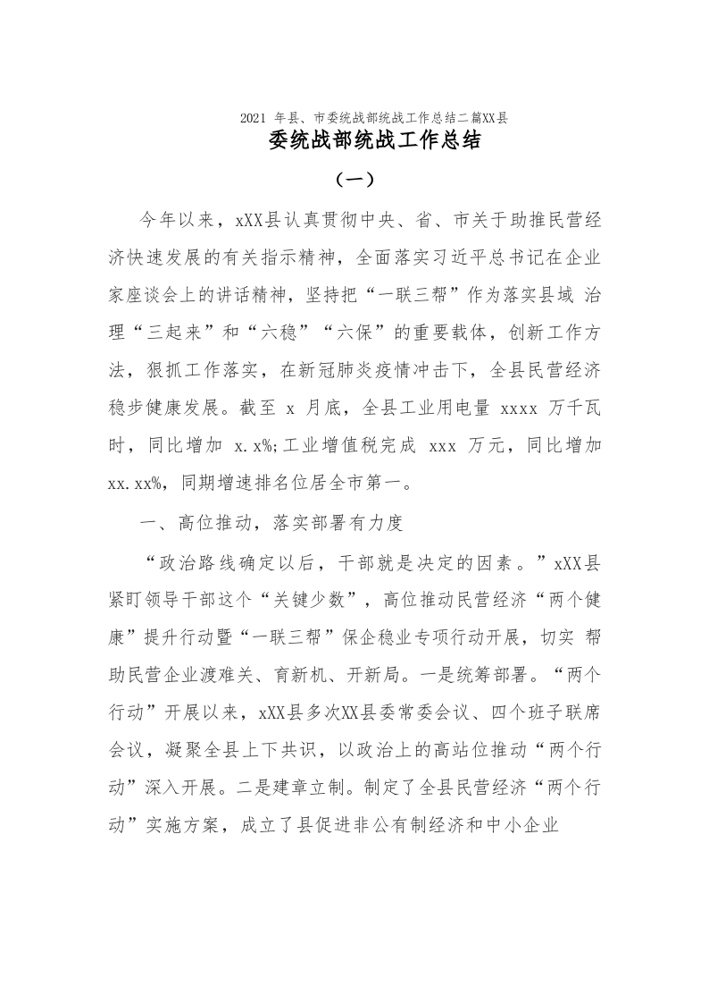 / 2021年县、市委统战部统战工作总结二篇