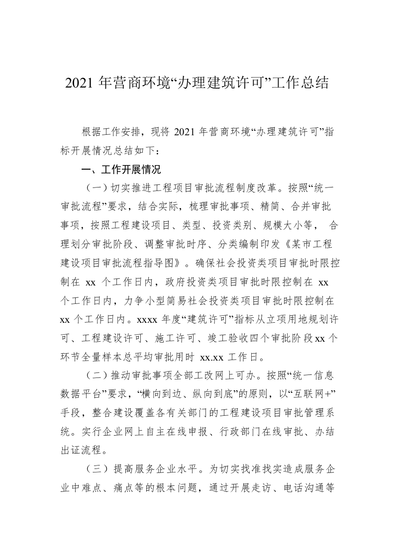 2021年营商环境“办理建筑许可”工作总结