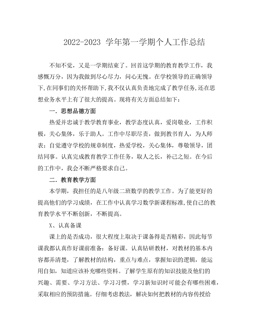 / 2022-2023学年第一学期个人工作总结