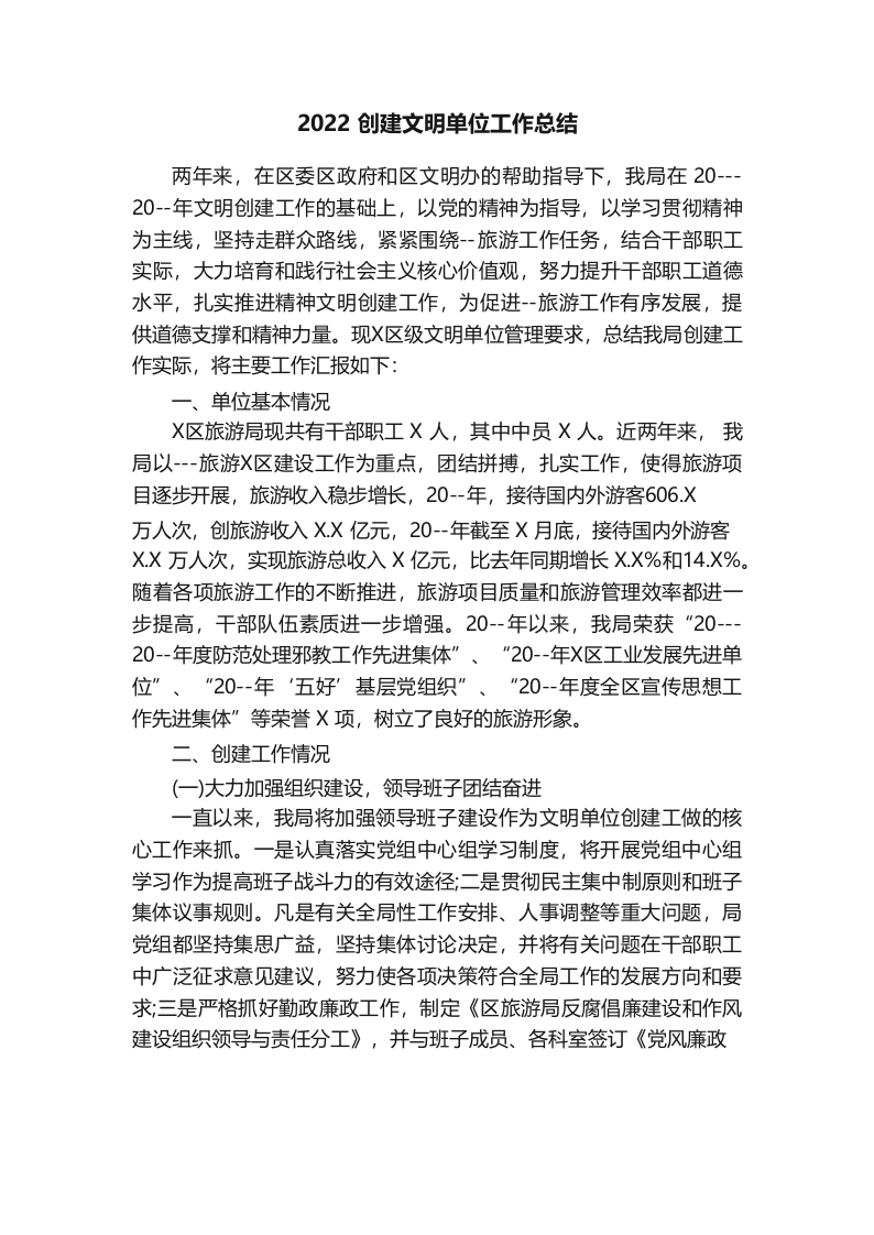 / 2022创建文明单位工作总结