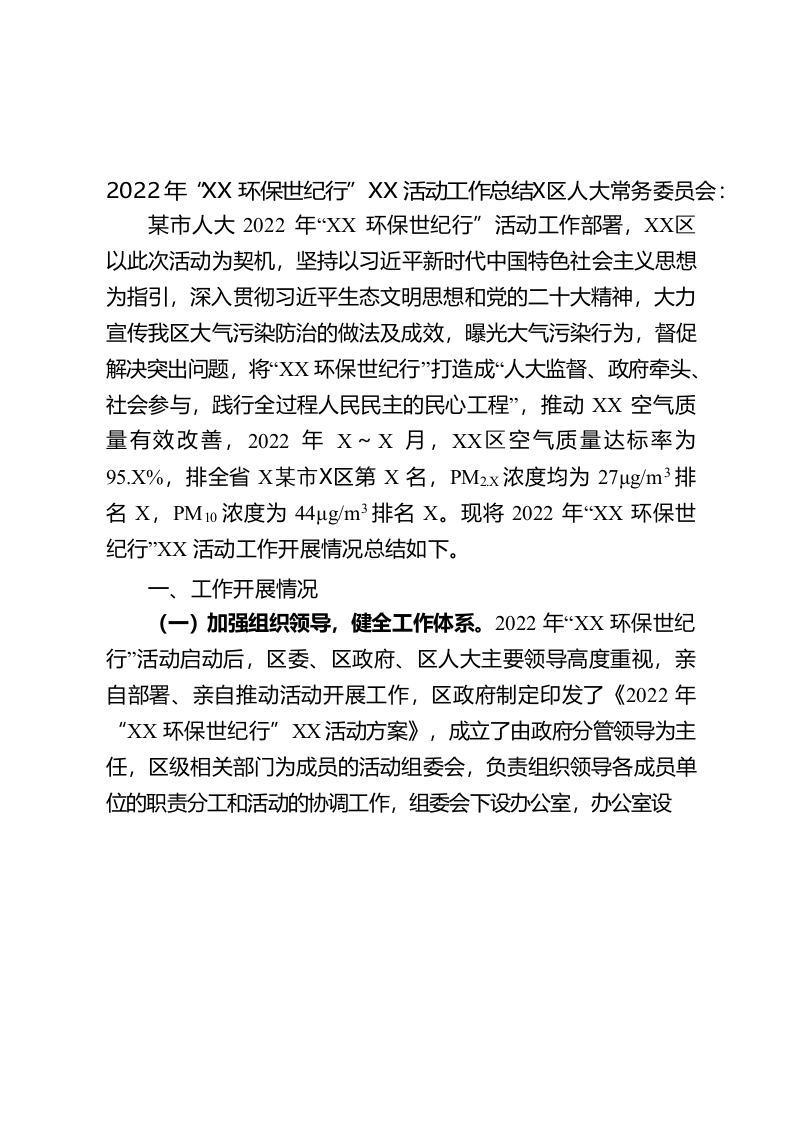 / 2022年“XX环保世纪行”XX活动工作总结