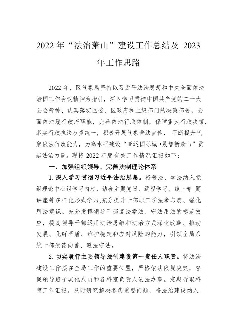 / 2022年“法治萧山”建设工作总结及2023年工作思路