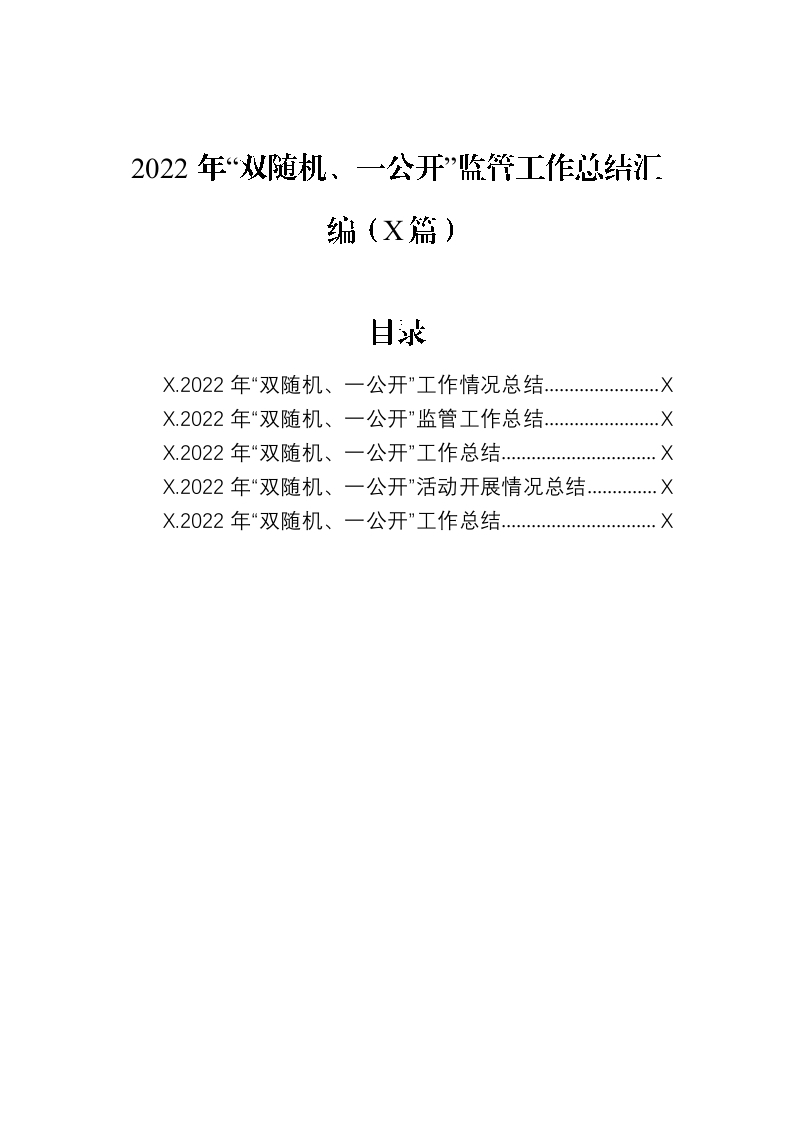 / 2022年“双随机、一公开”监管工作总结汇编(5篇)