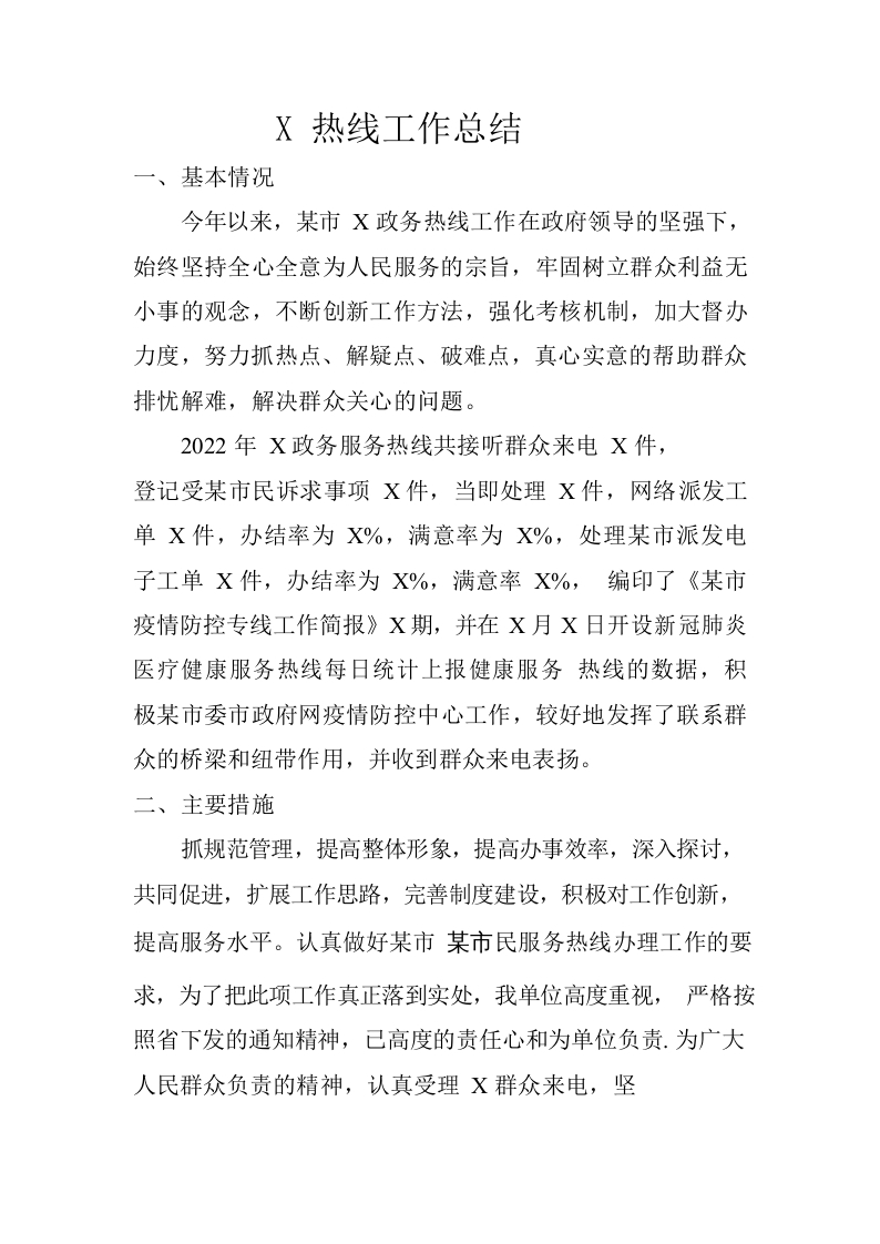 / 2022年12345热线工作总结