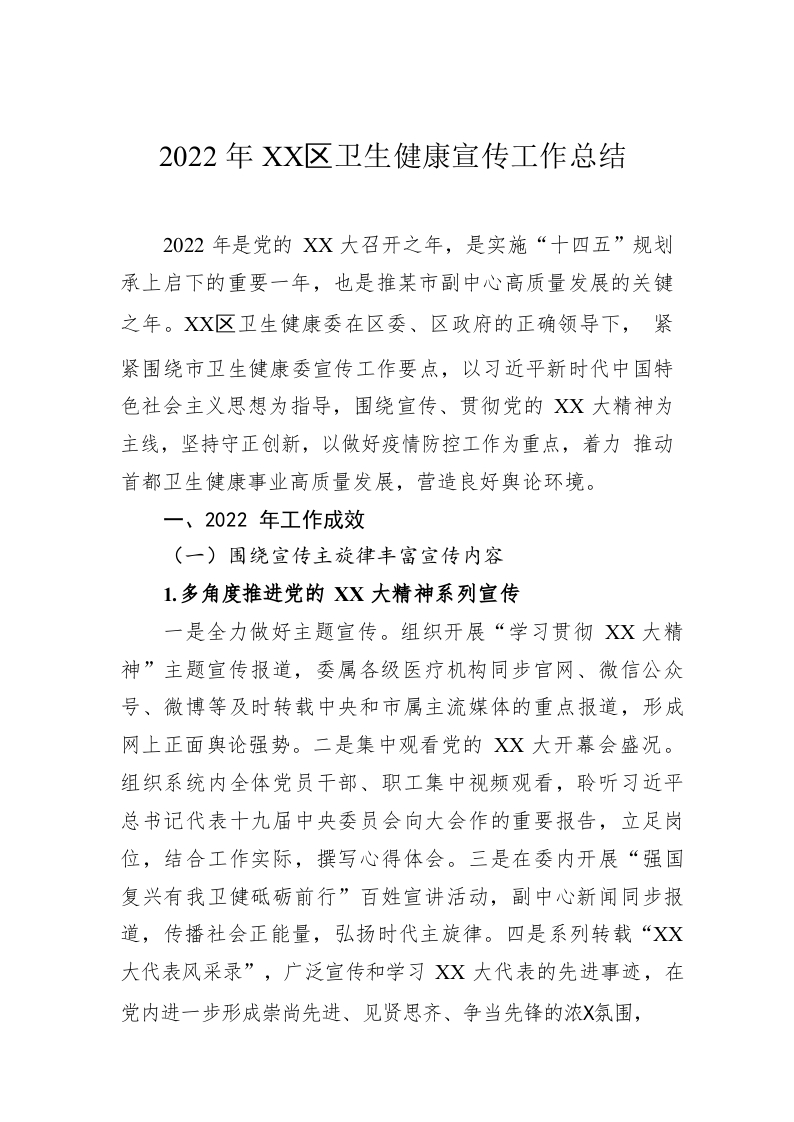2022年XX区宣传学习贯彻党的二十大精神工作总结