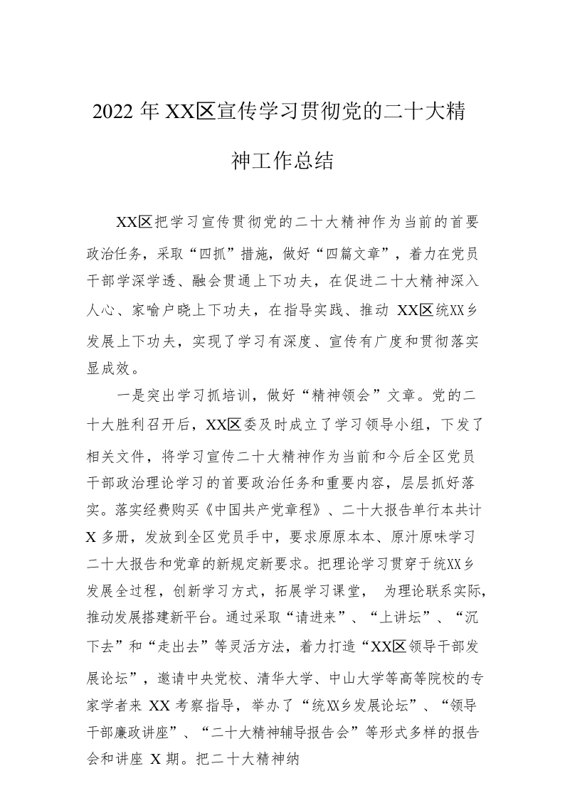 / 2022年XX区宣传学习贯彻党的二十大精神工作总结