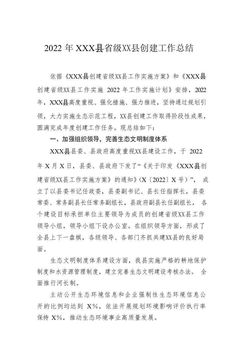 / 2022年XX县省级生态县创建工作总结