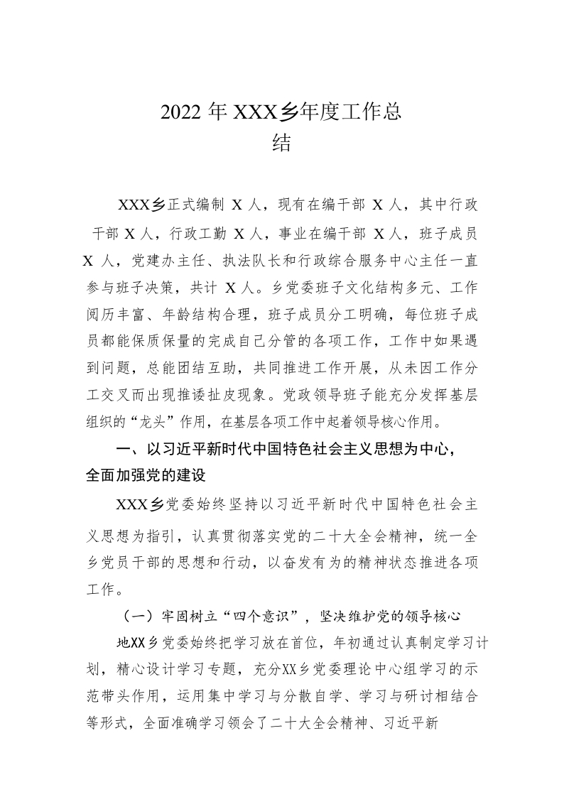 / 2022年XX乡年度工作总结(20221228)