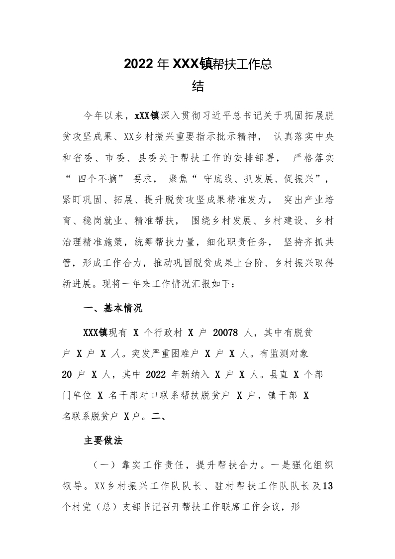/ 2022年XX镇帮扶工作总结