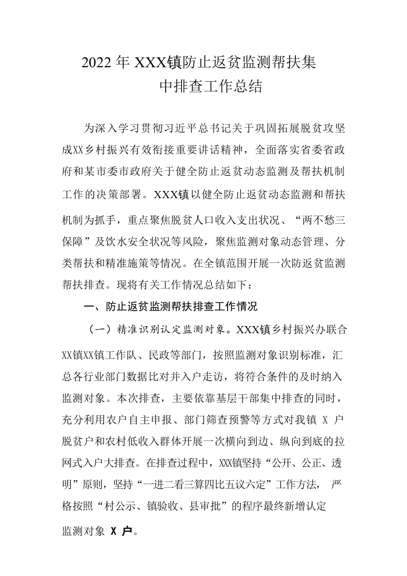 / 2022年XX镇防止返贫监测帮扶集中排查工作总结
