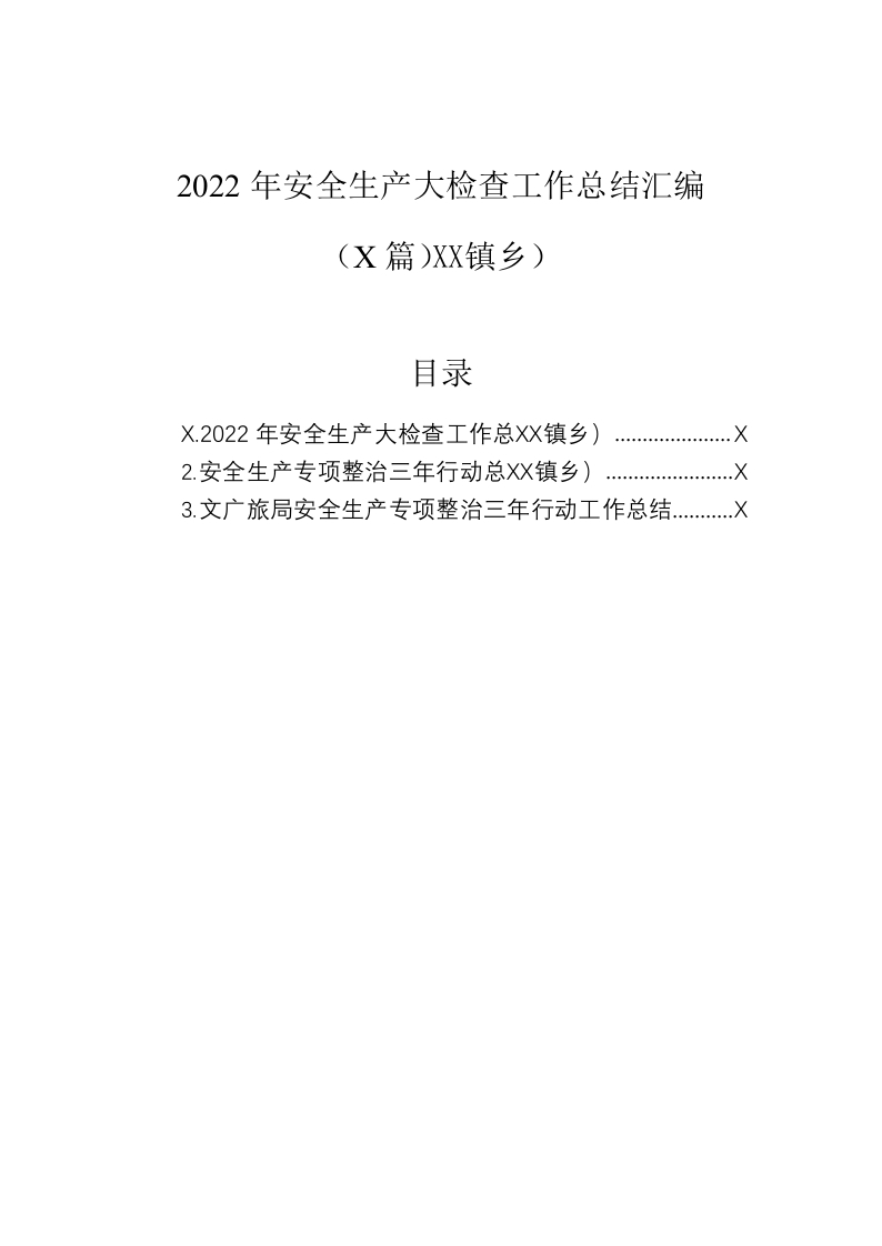 / 2022年安全生产大检查工作总结汇编(3篇)(含镇乡)