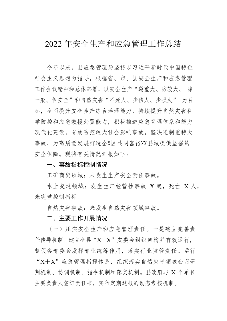 / 2022年安全生产和应急管理工作总结
