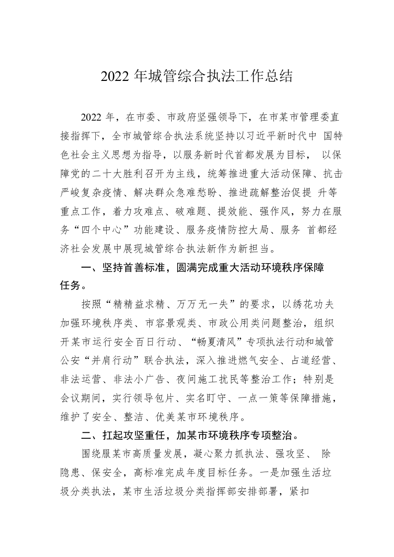 / 2022年城管综合执法工作总结(20230105)