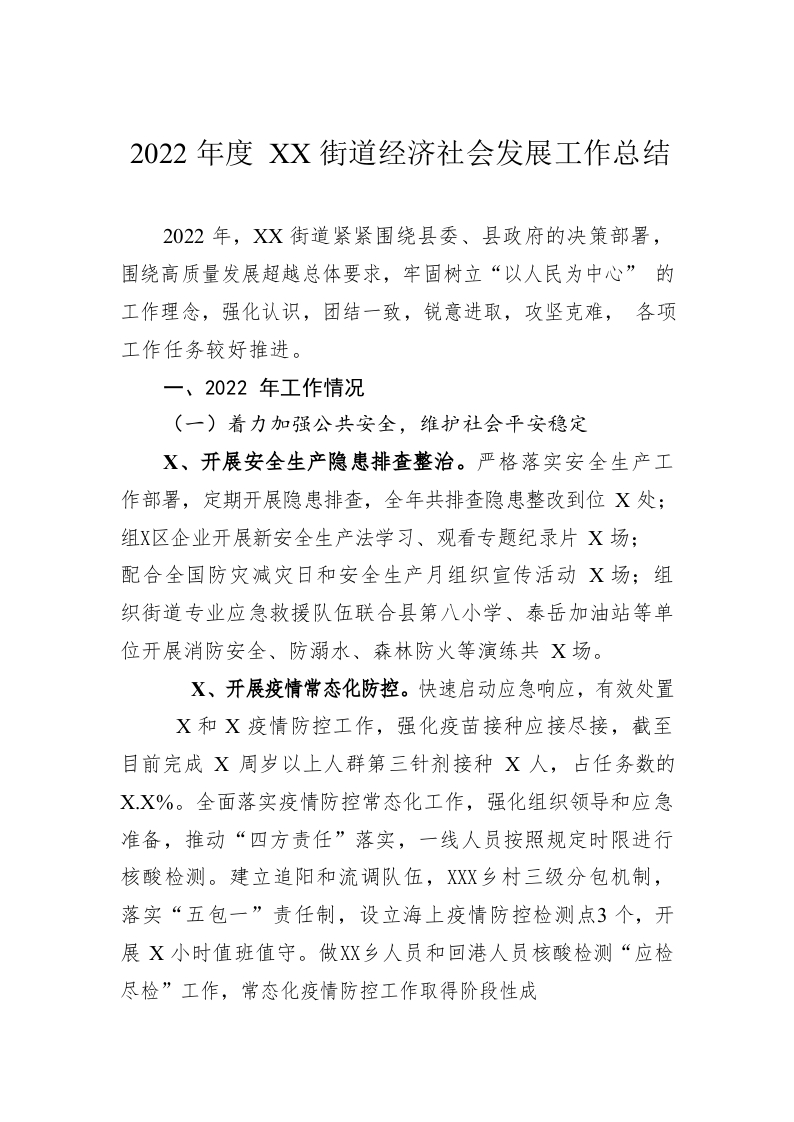 / 2022年度XX街道经济社会发展工作总结(20230110)