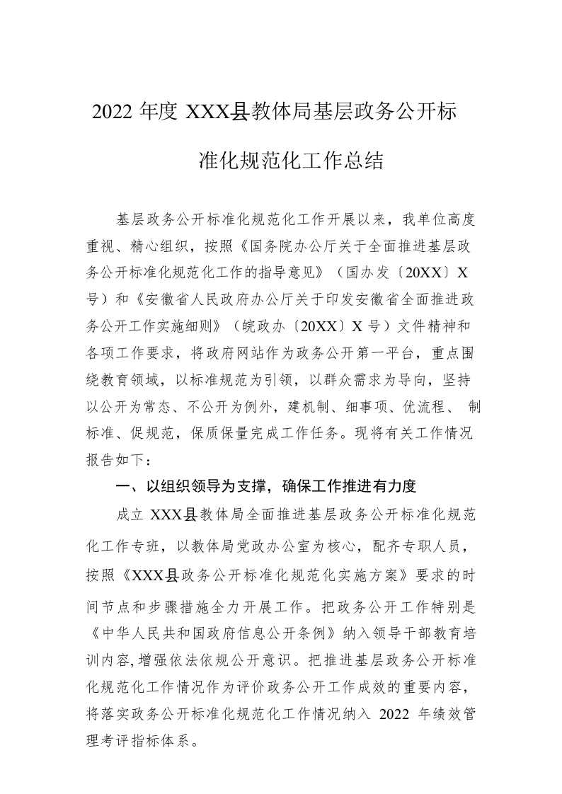/ 2022年度XX县教体局基层政务公开标准化规范化工作总结(20221104)