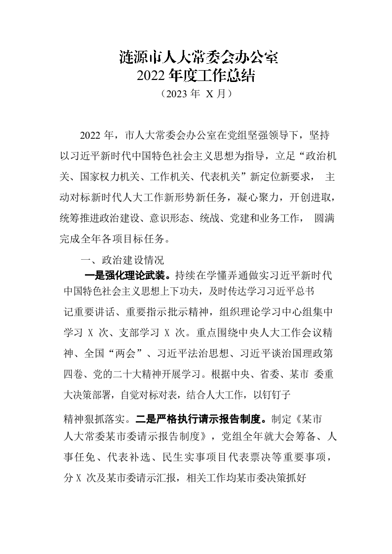 / 2022年度涟源市人大常委会办公室工作总结(综合考核迎检)