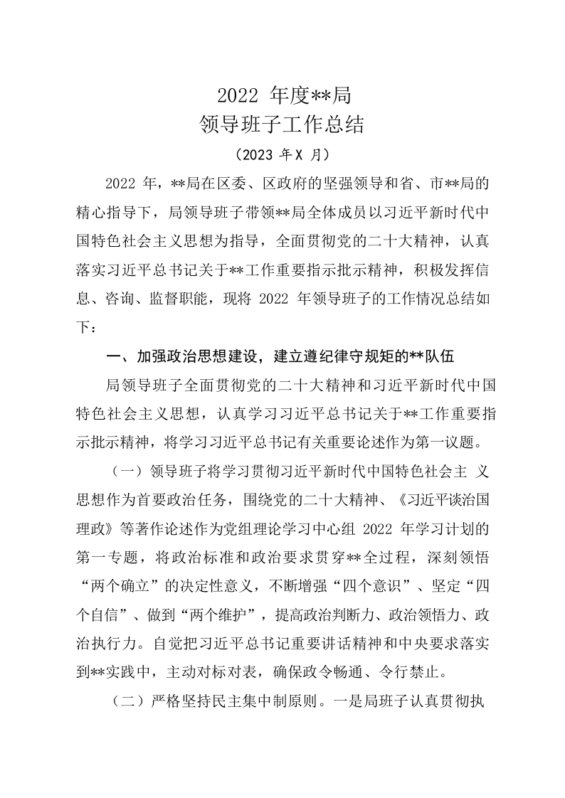 2022年度领导班子工作总结(202301)
