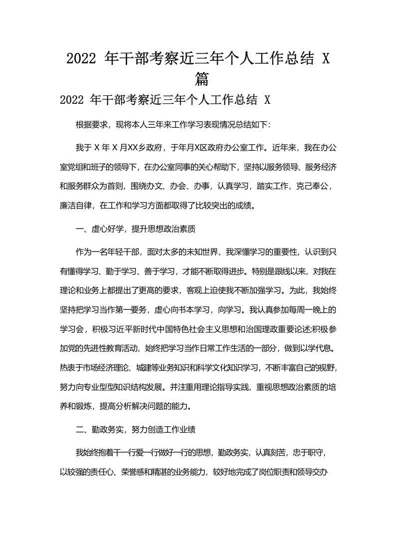 / 2022年干部考察近三年个人工作总结10篇