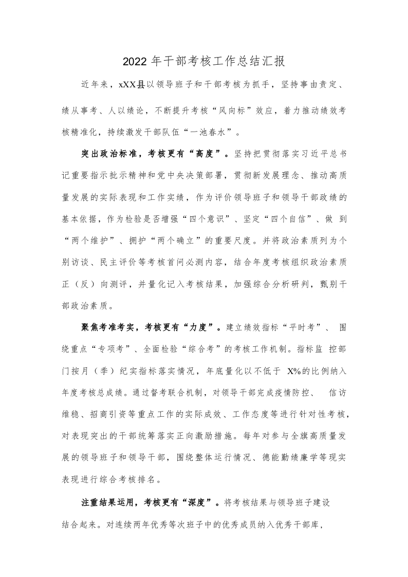 / 2022年干部考核工作总结汇报