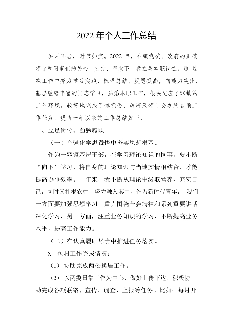 2022年个人工作总结范文