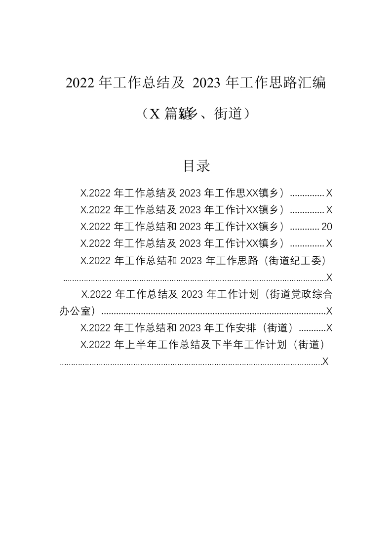/ 2022年工作总结及2023年工作思路汇编(8篇)(镇乡、街道)
