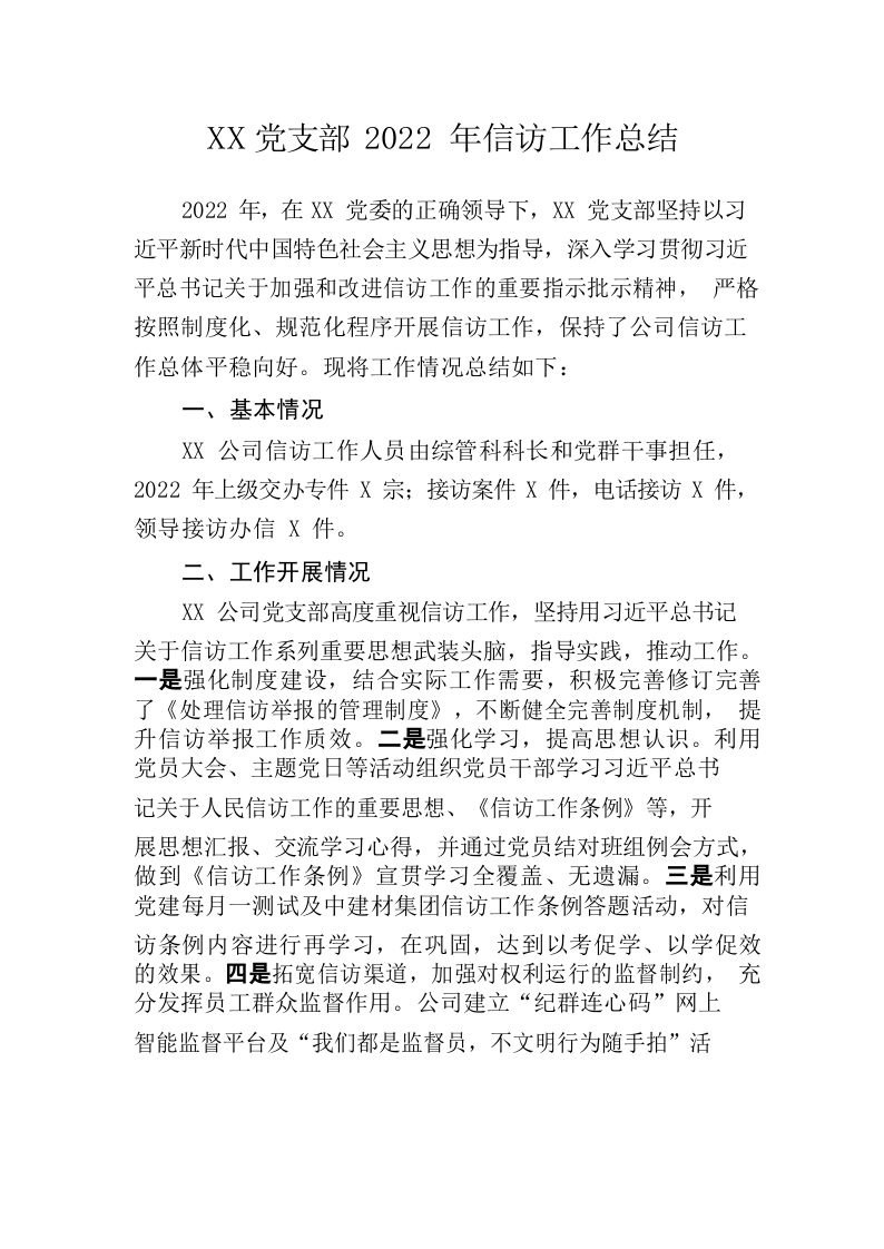 / 2022年国企党支部信访工作总结