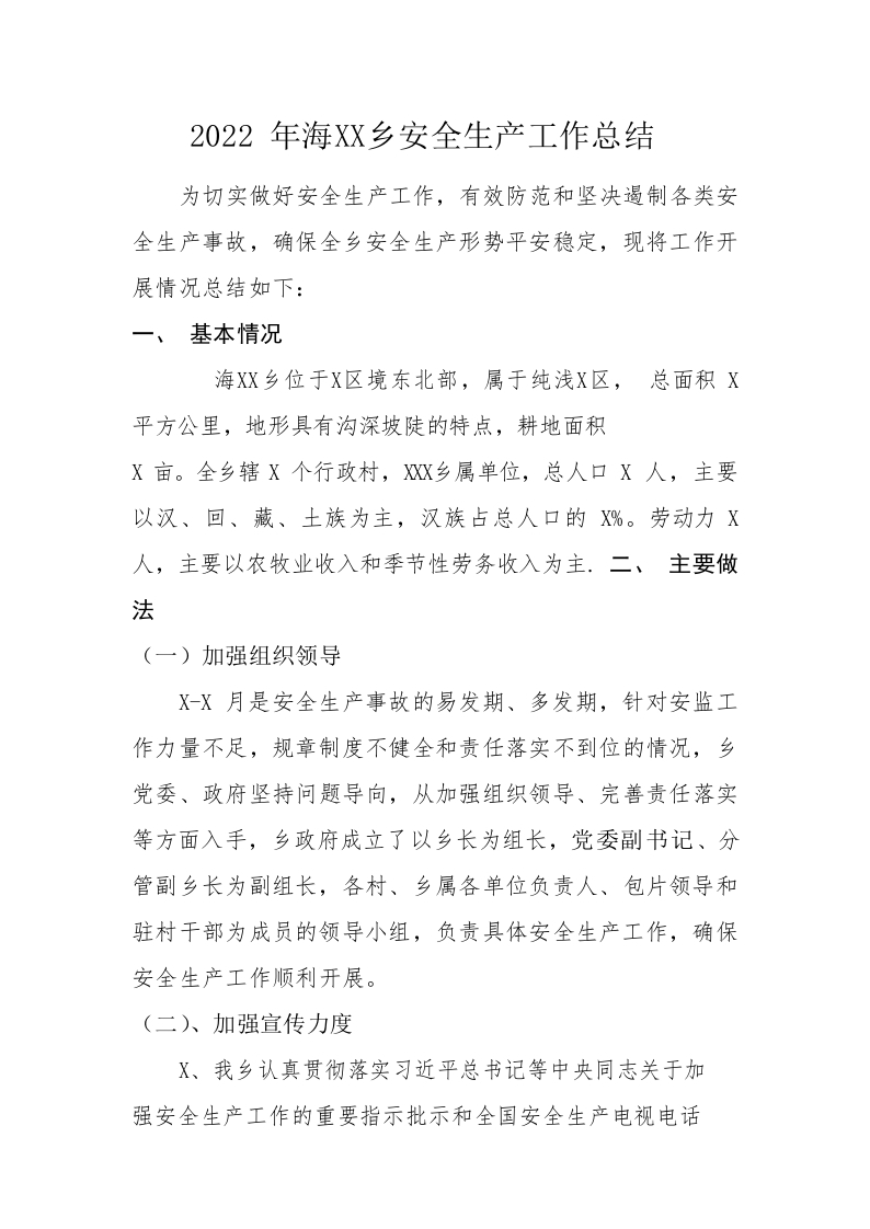 / 2022年海子沟乡安全生产工作总结