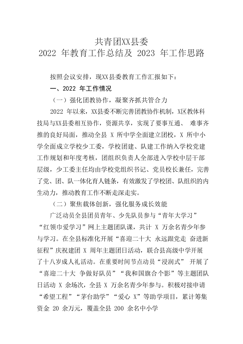/ 2022年教育工作总结及2023年工作思路(团县委)