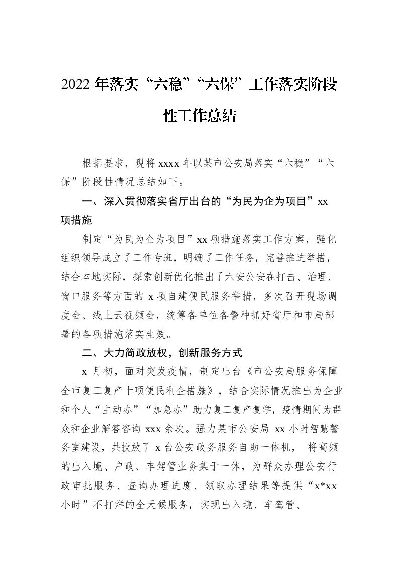 / 2022年落实“六稳”“六保”工作落实阶段性工作总结