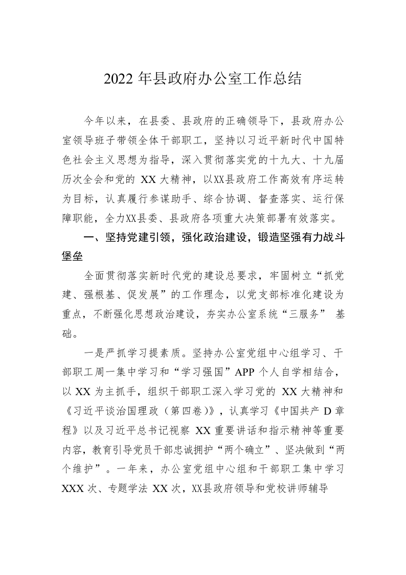 / 2022年某县政府办公室工作总结