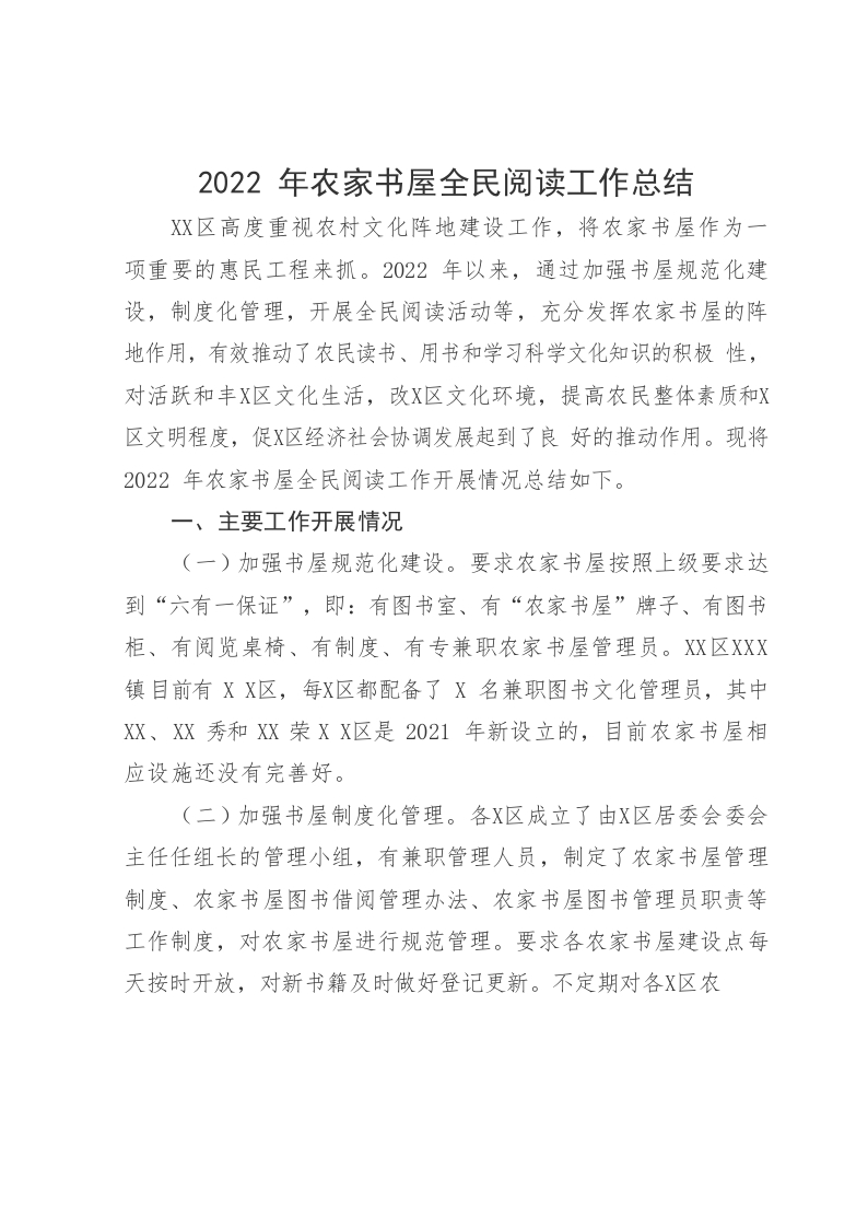 / 2022年农家书屋全民阅读工作总结