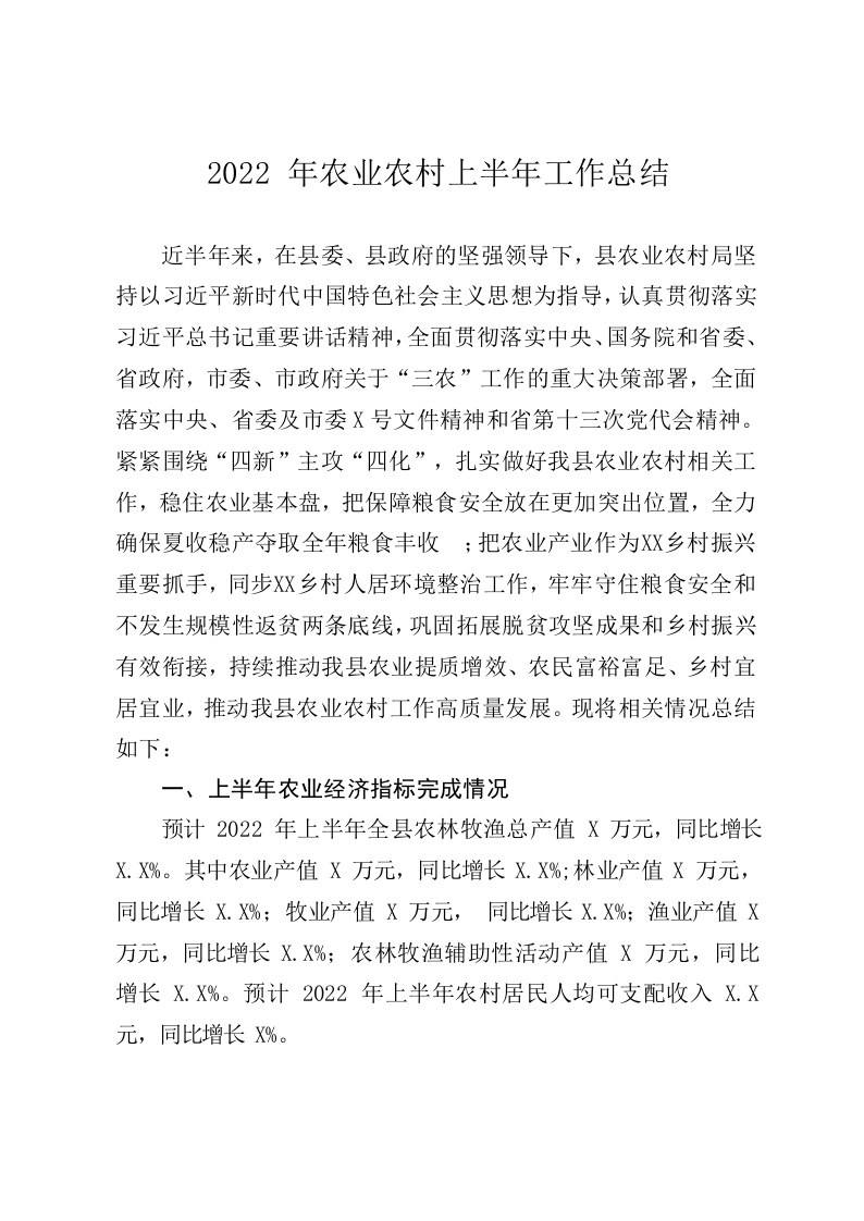 / 2022年农业农村上半年工作总结