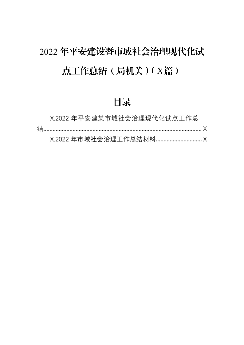 / 2022年平安建设暨市域社会治理现代化试点工作总结(局机关)(2篇)