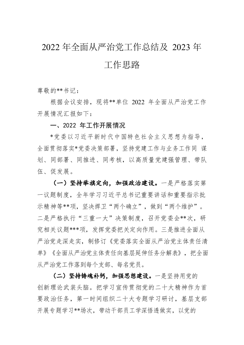 / 2022年全面从严治党工作总结及2023年工作思路