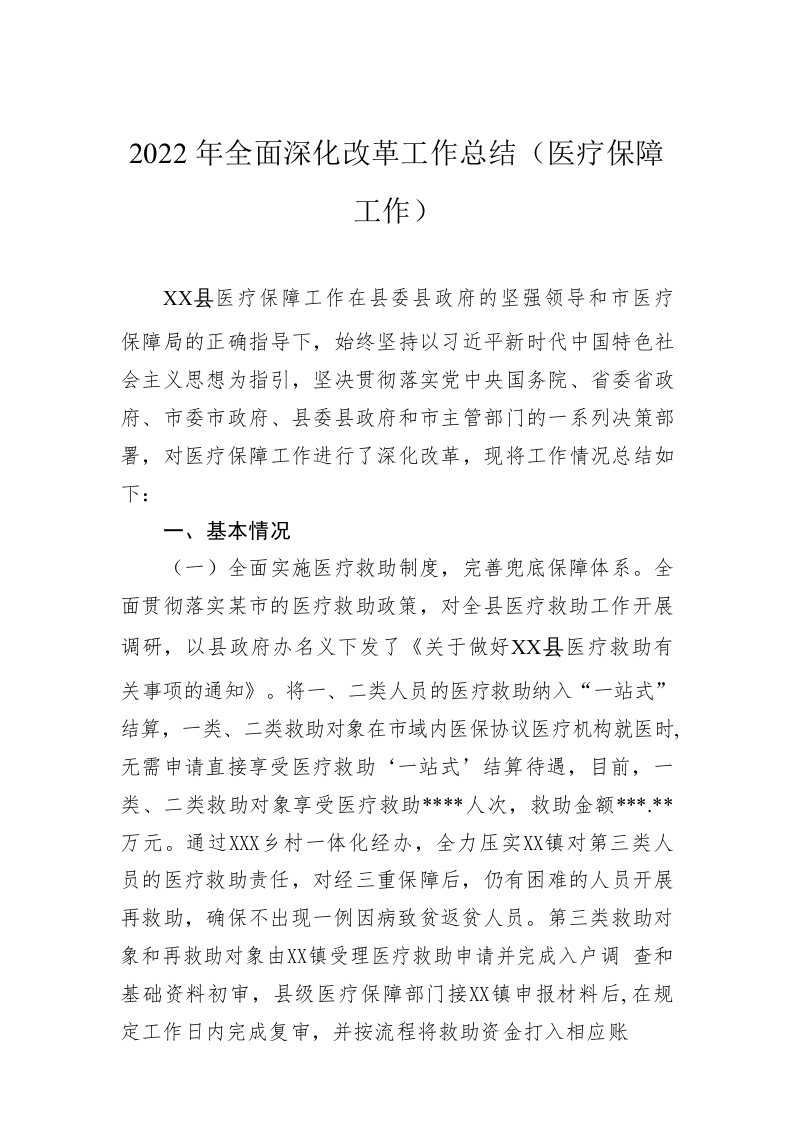 / 2022年全面深化改革工作总结(医疗保障工作)