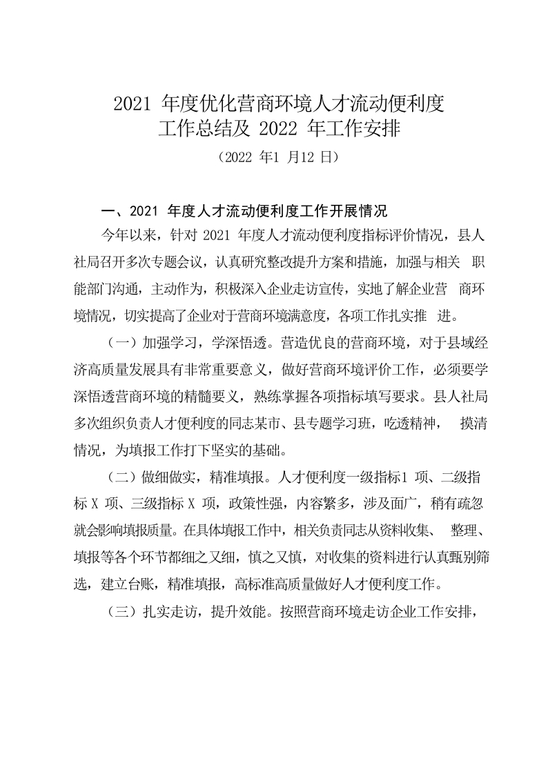 / 2022年人才流动便利度工作总结