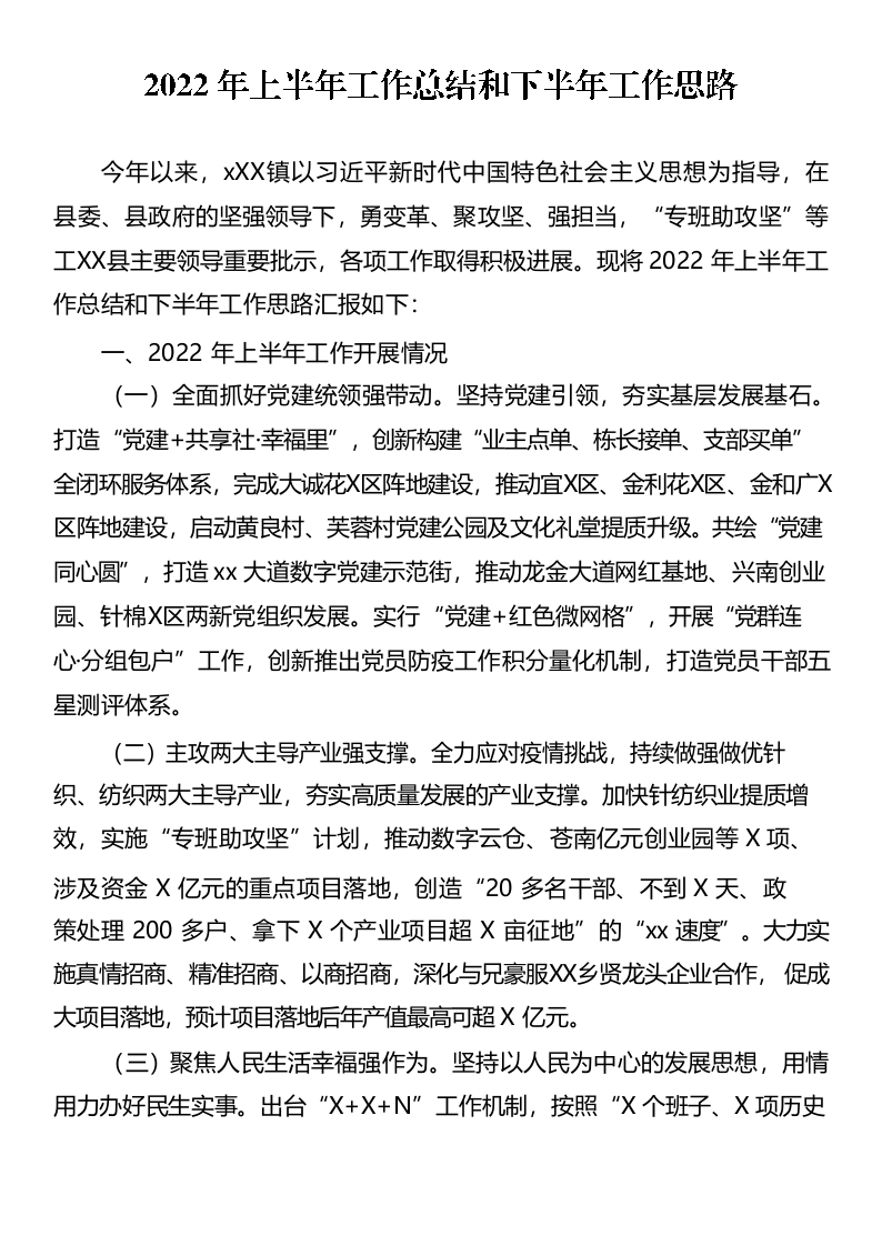 2022年上半年工作总结和下半年工作思路汇编(3篇)(街道专题)