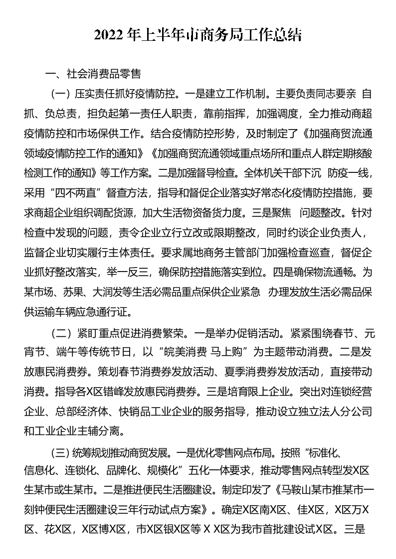 / 2022年上半年市商务局工作总结