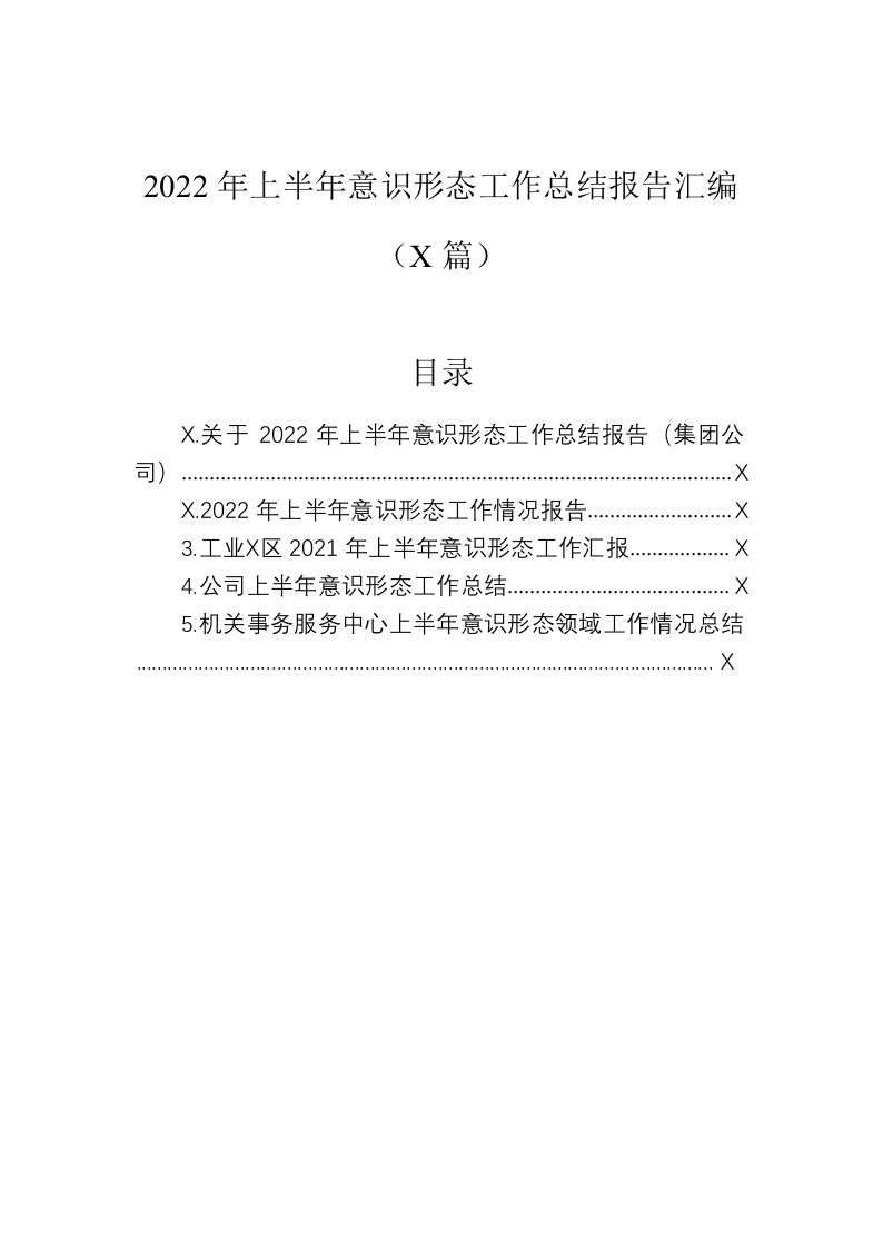 / 2022年上半年意识形态工作总结报告汇编(5篇)