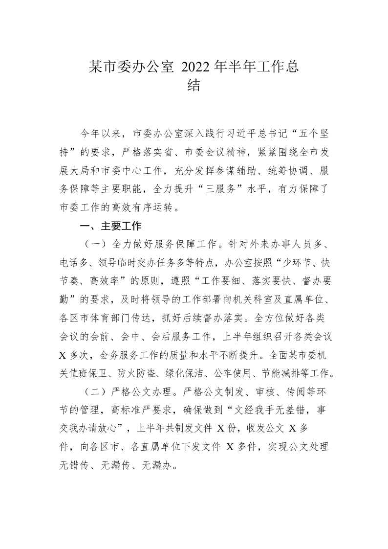 / 2022年市委办公室半年工作总结