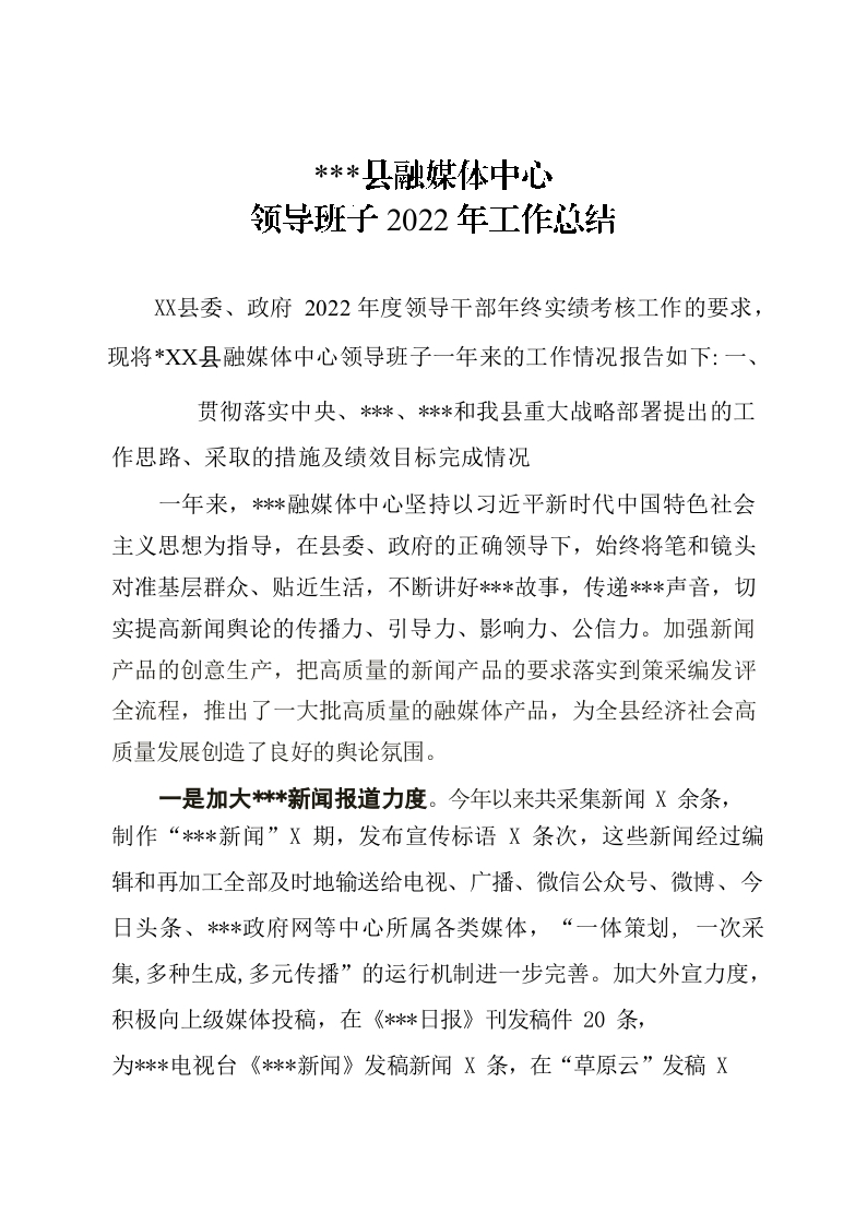 / 2022年县融媒体中心领导班子工作总结