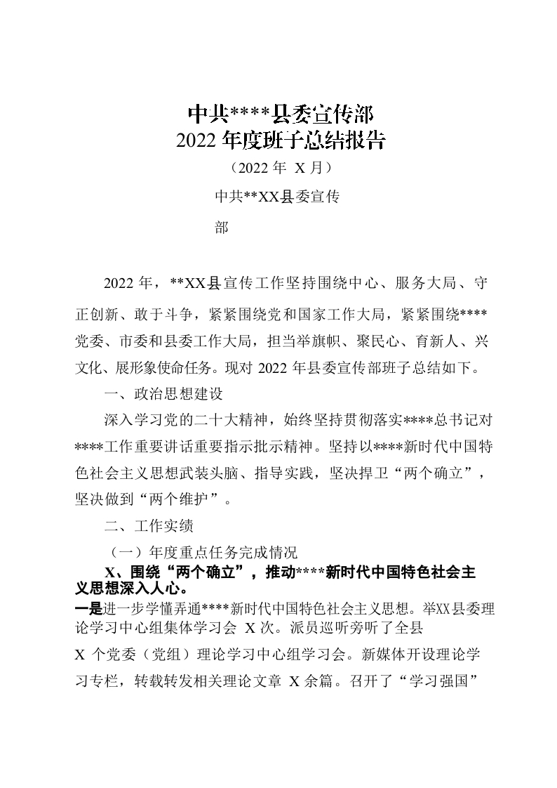 / 2022年县委宣传部领导班子工作总结