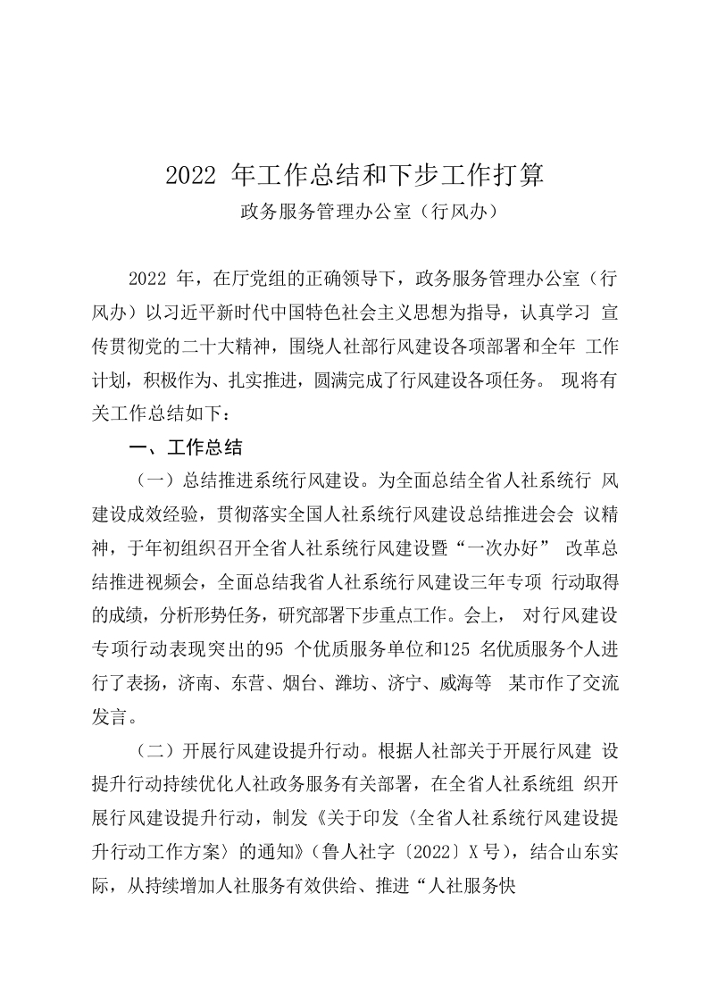 / 2022年行风办工作总结和下步工作打算