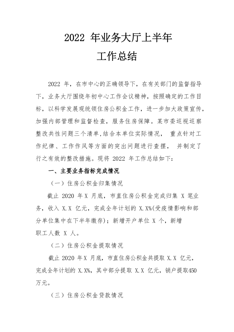 / 2022年业务大厅上半年工作总结