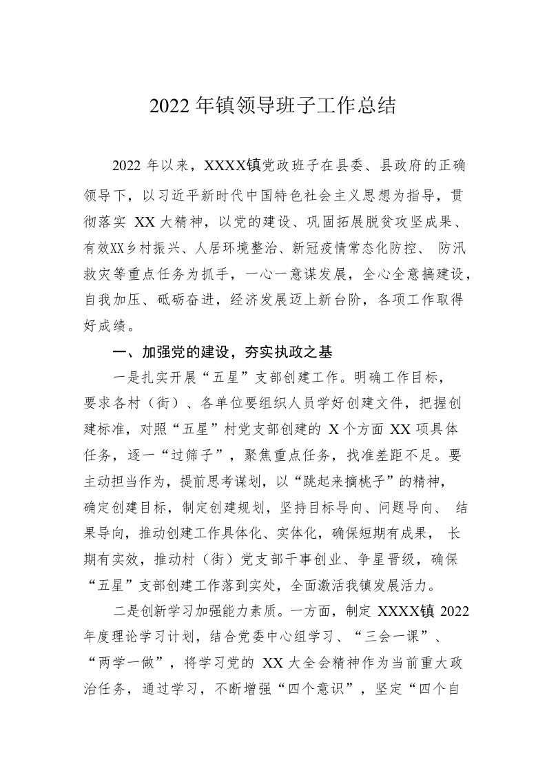 / 2022年镇领导班子工作总结