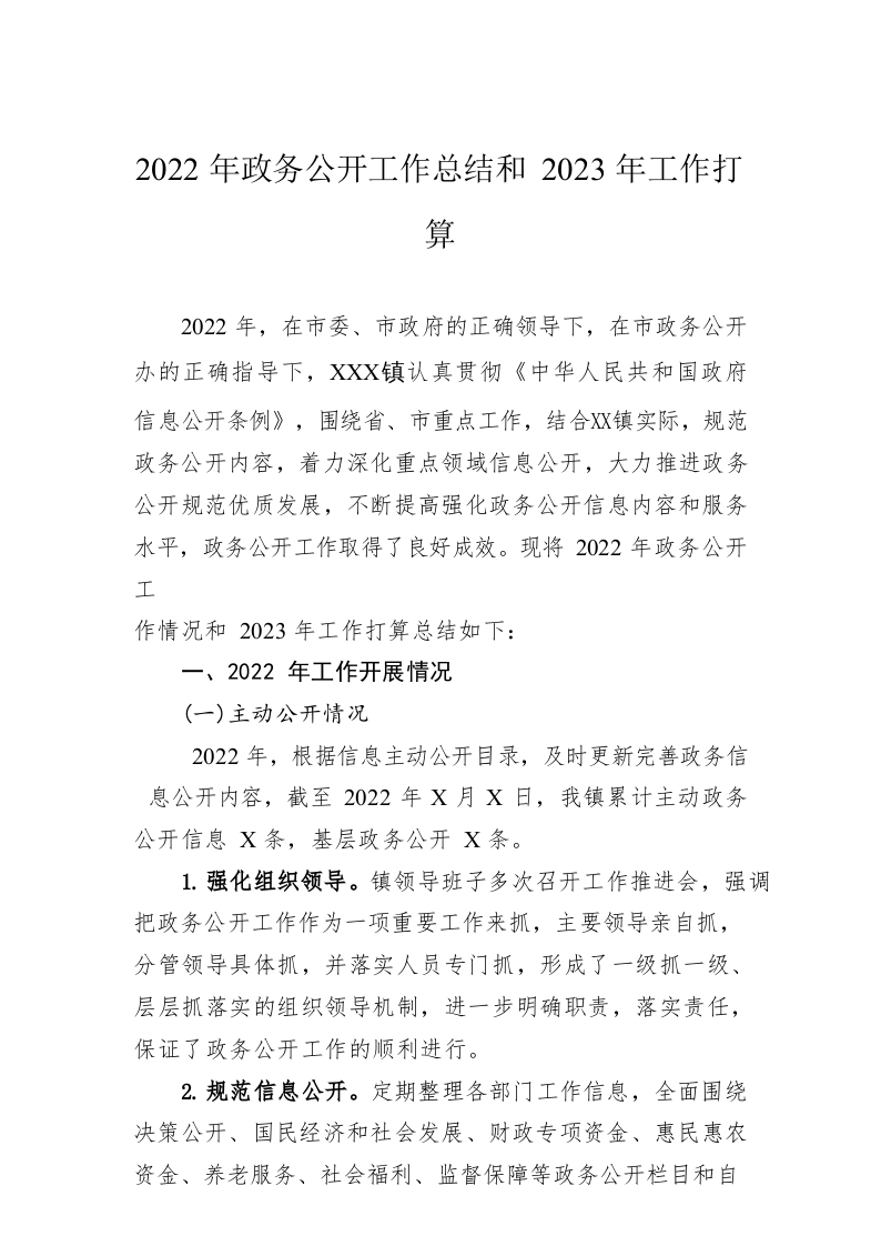 / 2022年政务公开工作总结和2023年工作打算