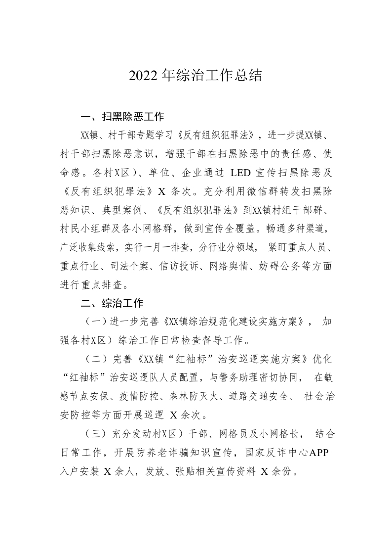 / 2022年综治工作总结(20221120)