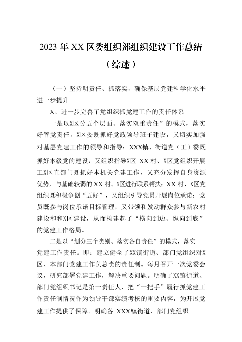 / 2023年XX区委组织部组织建设工作总结(综述)